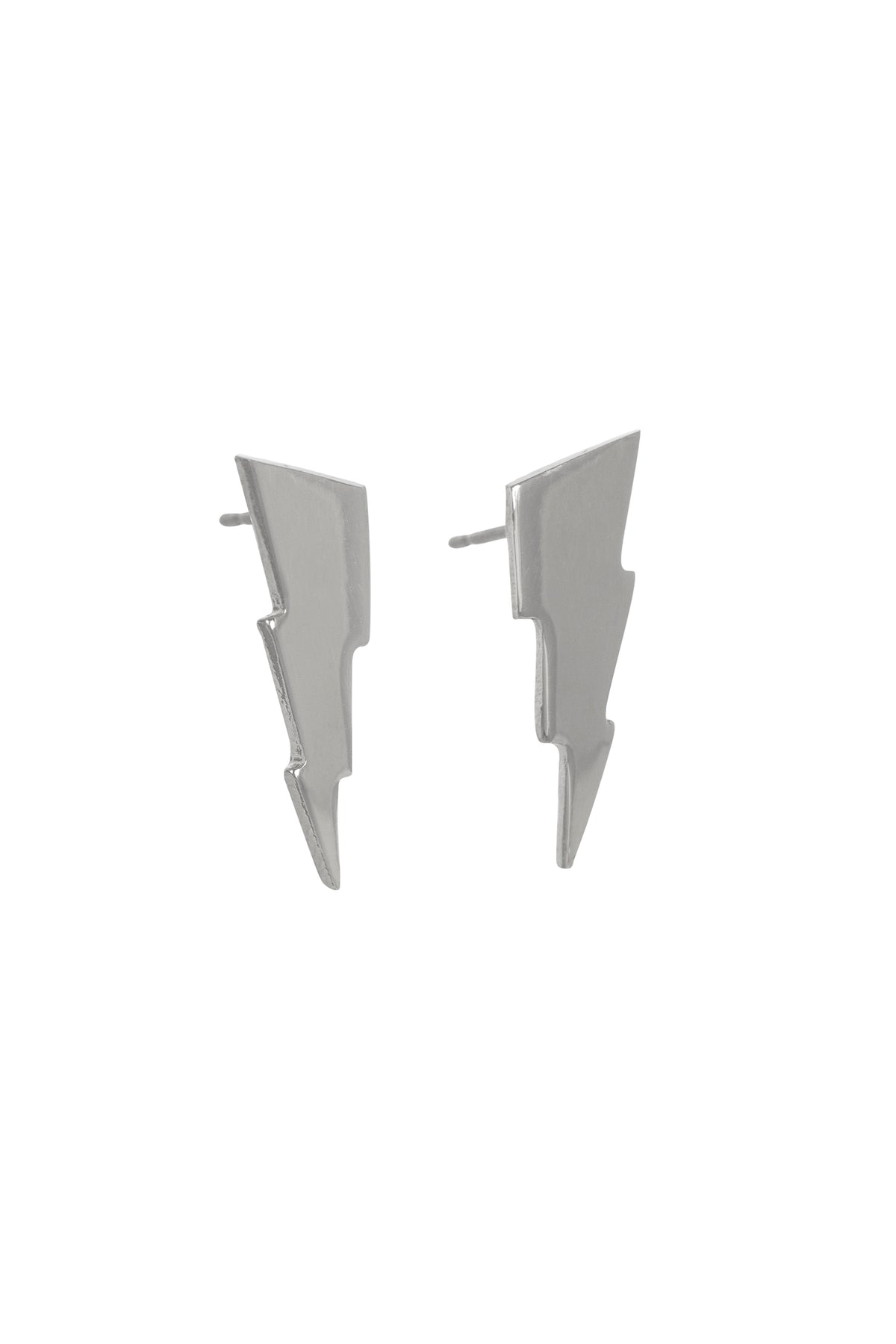 Our new model triple flash. Three tiered lightning bolt earrings in recycled sterling silver with a highly polished finish. From the Rock & Roll collection.