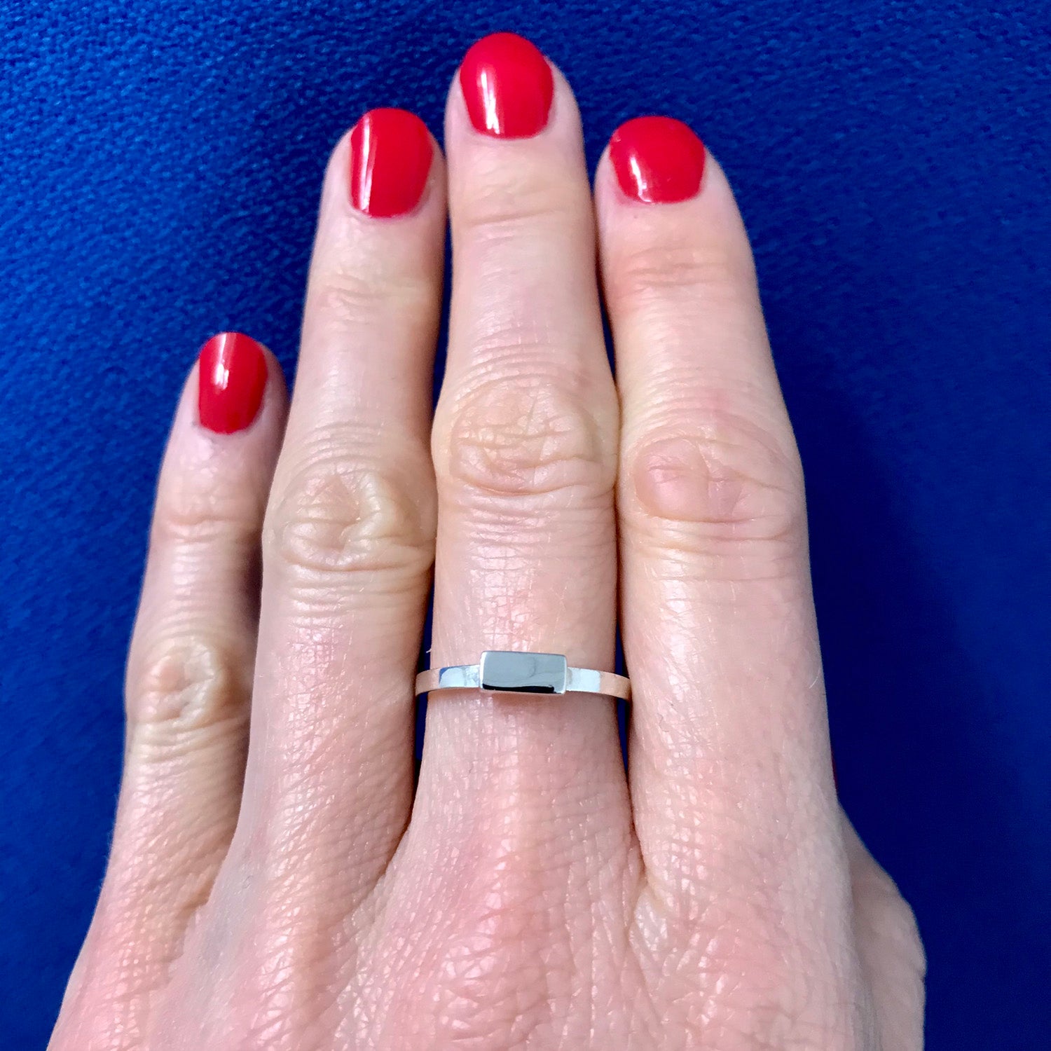 A beautifully made hallmarked sterling silver ring. This 1.8mm flat ring has a 3mm thick rectangular bar on top. Minimalist, clean line heaven. This ring looks great worn alone or in a stack.